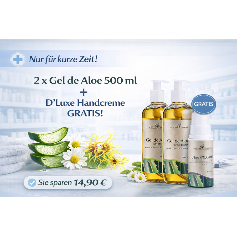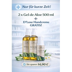 Buy 2x Gel de Aloe [The Original] 500ml and receive 1x D`Luxe Hand Cream as a gift!